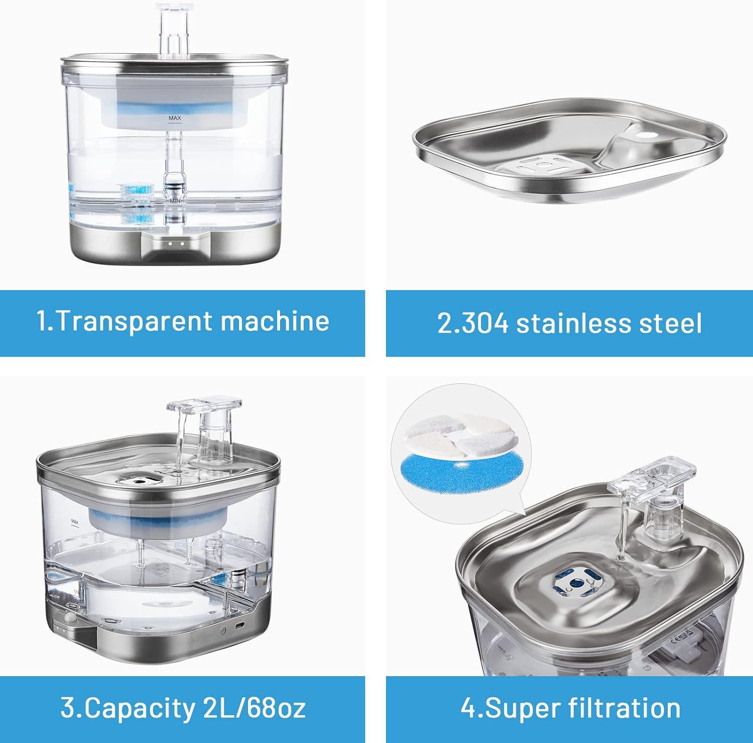 A: It is recommended to replace the filter every two weeks to keep the water clean.